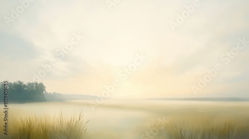 © Marsor, Fototapeta premium A painting of a field with a sun in the sky
