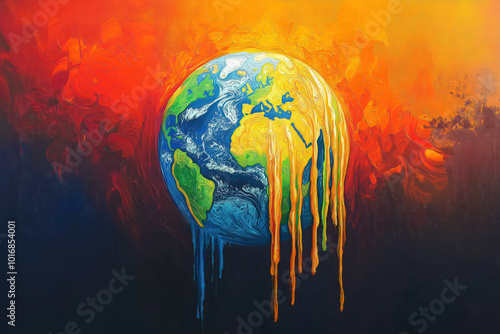 © WETDREAM, Naklejka premium A painting of a globe with a blue and green swirl of paint dripping down it
