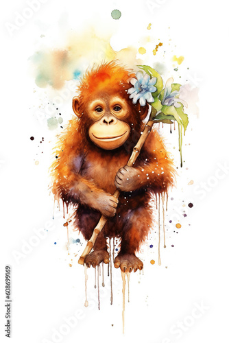 © Friedbert, Fototapeta premium A painting of a monkey holding a flower. Generative AI.