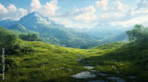 © progressman, Fototapeta premium a painting of a mountain landscape