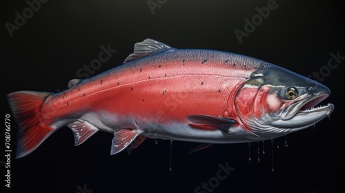 © Anna, Fototapeta premium a painting of a salmon with its mouth open and it's mouth hanging off of the side of it's body, with water dripping from it's mouth.