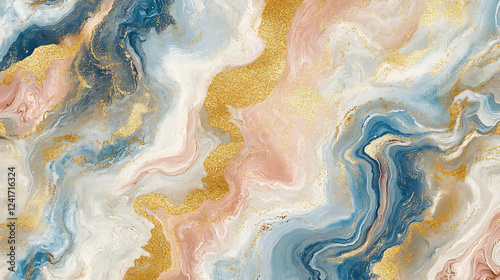 © Watcharin, Obraz premium A painting of a wave with gold and blue colors