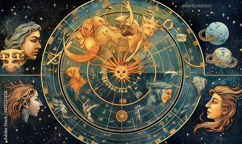 © Anna, Naklejka premium a painting of a zodiac sign surrounded by other zodiac symbols. generative ai