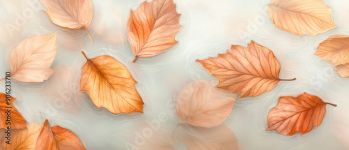 Fototapeta premium A painting of leaves floating in water with a calm and serene mood