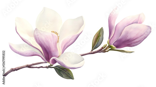 © melty, Fototapeta premium A painting of two white flowers on a branch