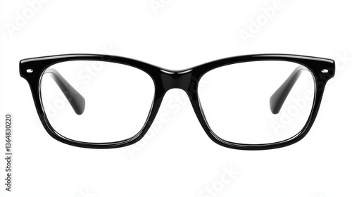 Fototapeta premium A pair of black eyeglasses is showcased prominently, emphasizing their modern and elegant design. The clear lenses enhance their stylish appearance, ideal for fashion and functionality