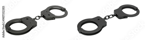 © S u n n y B u n n y, Obraz premium A Pair of Black Handcuffs on a Dark Background Symbolizing Law Enforcement and Detention Equipment, Representing Justice and Restraint