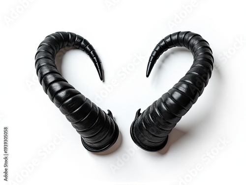 © Ева Поликарпова, Obraz premium A pair of black horns sits alone on a white background, ready for use in various designs