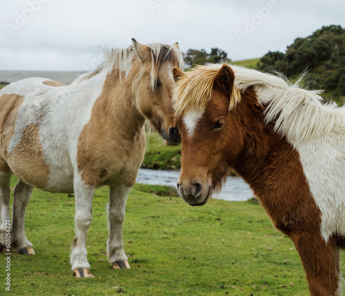 © James, Obraz premium A pair of brown and white Dartmoor ponies