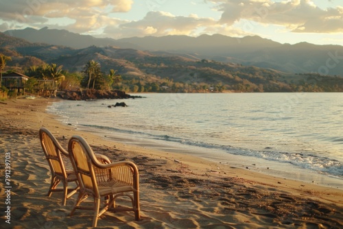 Fototapeta premium A pair of chairs summer tropical beach lapis ocean shore white sand vacation...