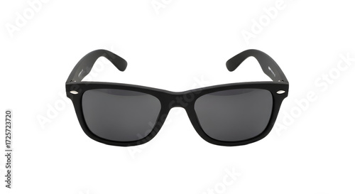 Fototapeta premium A pair of classic black sunglasses with dark lenses, a plain fashion accessory object isolated on a clean white background