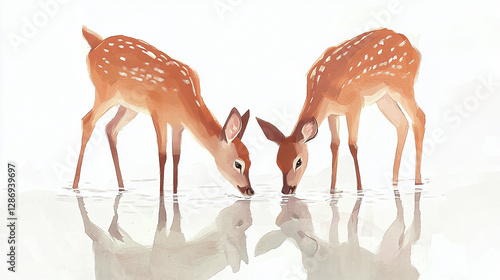 © Oleksandr, Naklejka premium A pair of deer drinking from a clear stream, inspired by ‘As the deer pants for water’ from Psalms