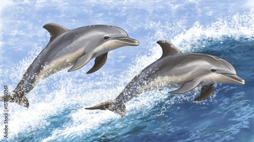 Naklejka premium A pair of dolphins gliding just beneath the surface of the ocean