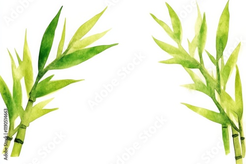 Obraz premium A pair of green bamboo branches, showcasing their slender leaves and vibrant...