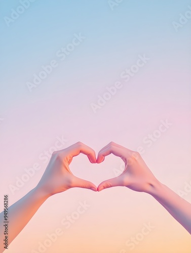 Fototapeta premium A pair of hands forming a heart shape against a serene pastel backdrop,...