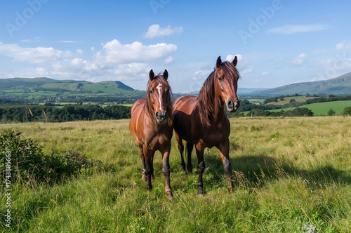 © TheWaterMeloonProjec, Obraz premium A Pair of Horses in a Countryside Pasture