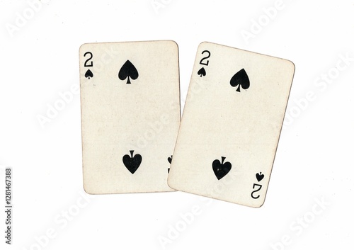 © Philip, Obraz premium A pair of identical vintage playing cards on a white background.