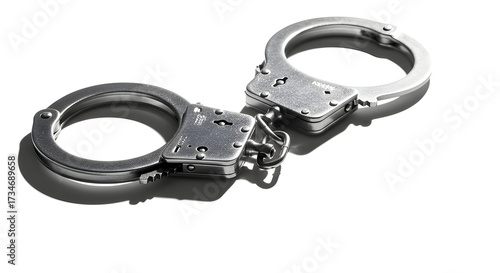 Obraz premium A pair of shiny silver handcuffs, suggesting themes of crime, law, and...