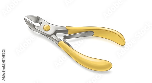 © Masaji, Obraz premium A pair of silver and yellow nail clippers isolated on a plain white background view