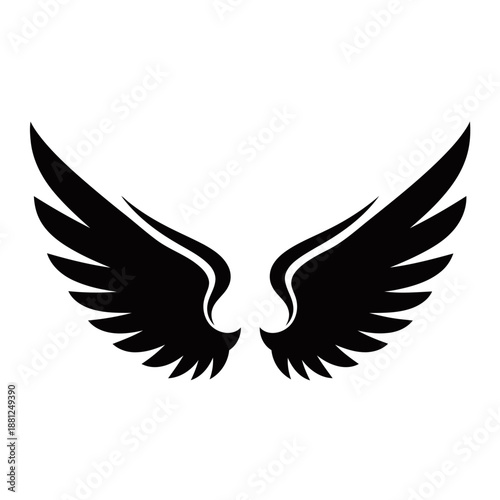 © Fathur Rozak, Fototapeta premium A pair of stylized black angel wings spread wide against a white background.