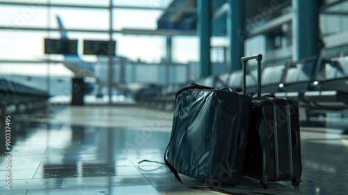 Obraz premium A pair of suitcases resting on a tiled floor, often used in travel or moving...