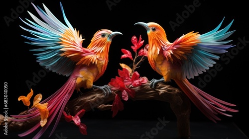 Obraz premium A pair of tropical birds engaged in a playful dance