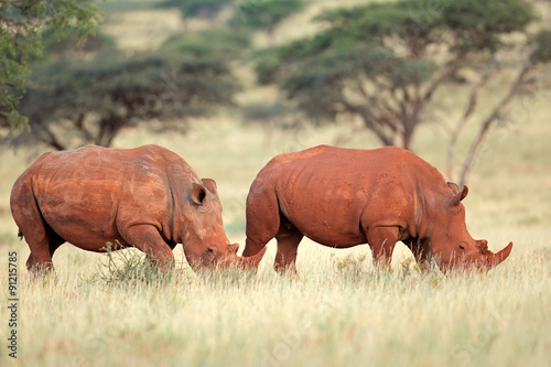 Fototapeta premium A pair of white rhinoceros (Ceratotherium simum) in natural habitat, South...