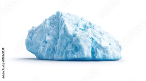 © happysunstock, Obraz premium A pale blue rock-like structure with textured surfaces, resembling ice or a mineral, set against a plain white background.