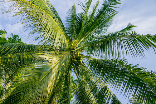 Fototapeta premium A Palm Tree and sky with clouds in the background