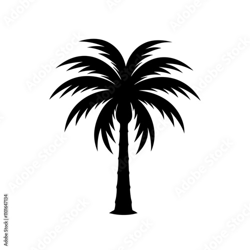 © designpixa, Obraz premium A Palm tree vector silhouette isolated on a white background, Tropical palm tree black clipart. Tropical palm tree