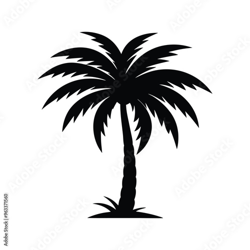 © Zahid, Obraz premium A Palm tree vector silhouette isolated on a white background, Tropical palm tree black clipart. Tropical palm tree