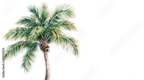Fototapeta premium A palm tree visualized with tall watercolor fronds isolate on white background