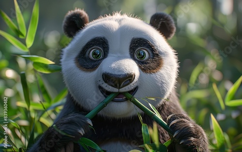 © FMSTUDIO, Obraz premium A panda bear eats bamboo in a lush forest