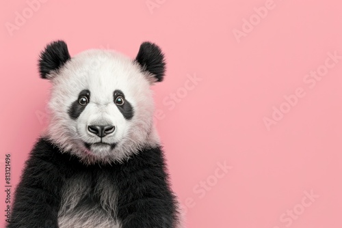 © Nico, Naklejka premium A panda bear is looking at the camera with a sad expression with copy space