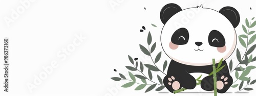 © auttawit, Fototapeta premium A panda bear is sitting in a forest with a bunch of green leaves