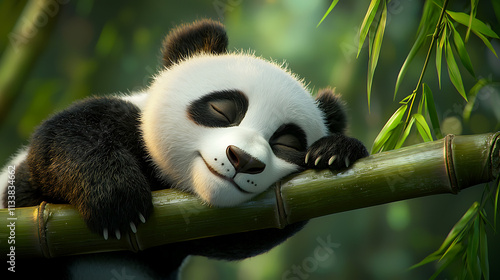 © Wongstorn, Fototapeta premium A panda bear is sleeping on a tree branch