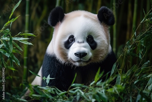 © Alena, Obraz premium A panda bear walking through a bamboo forest