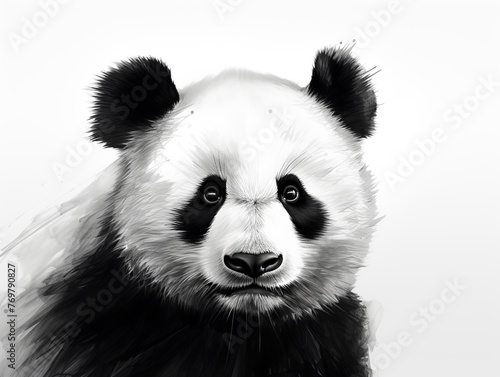 © Muschima, Fototapeta premium A panda bear with a black and white face is staring at the camera
