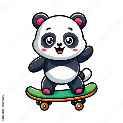 © Khalid, Fototapeta premium A panda playing skateboarding. Adorable Panda Skateboarding Illustration - Fun Cartoon Animal Vector for Kids and Designs