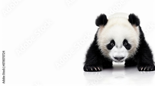 © Viktor, Naklejka premium A panda stands in black and white, on hind legs, front paws touching the ground, gazing at the camera