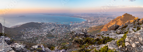 © Jennifer, Fototapeta premium A panorama of Cape Town from Table Mountain at sunset, South Africa