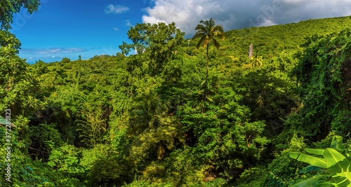 Fototapeta premium A panorama view across the rainforest in St Kitts