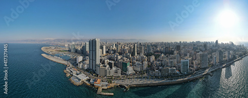 © Ali Chehade Farhat, Fototapeta premium A panoramic aerial view of the city of Beirut Lebanon