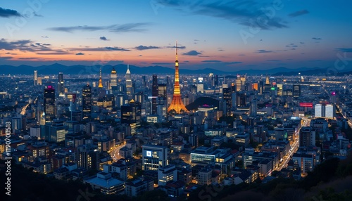 © AKA, Fototapeta premium A panoramic night view from Roppongi Hills