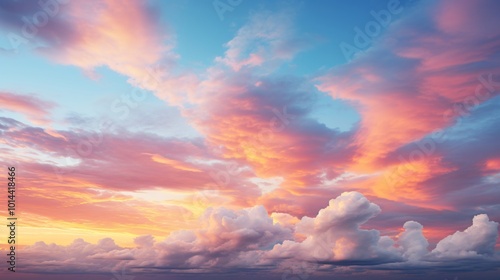 Naklejka premium A panoramic shot of a blue sky with colorful clouds at sunset
