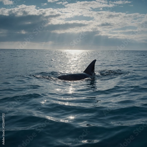 © Qayoom, Naklejka premium A panoramic shot of a whale swimming through an endless sea.
