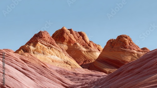 © nanskyblack, Naklejka premium A panoramic view of a desert canyon with colorful layered rock formations