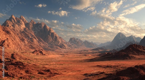 © Ghundutz, Fototapeta premium A panoramic view of a vast, arid desert landscape,
