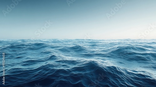 © sa-photo, Fototapeta premium A panoramic view of a vast ocean with a gradient of blue tones and gentle waves, perfect for summer themed designs with ample copy space.