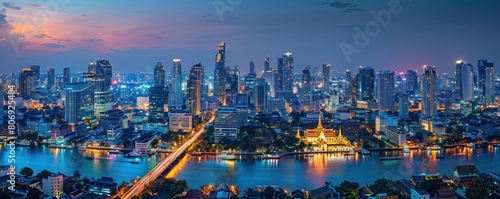 Obraz premium A panoramic view of Bangkok's skyline at night